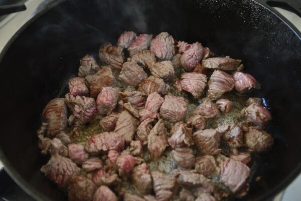 • Cho thịt bò đã ướp vào nồi, đảo đều cho săn lại.